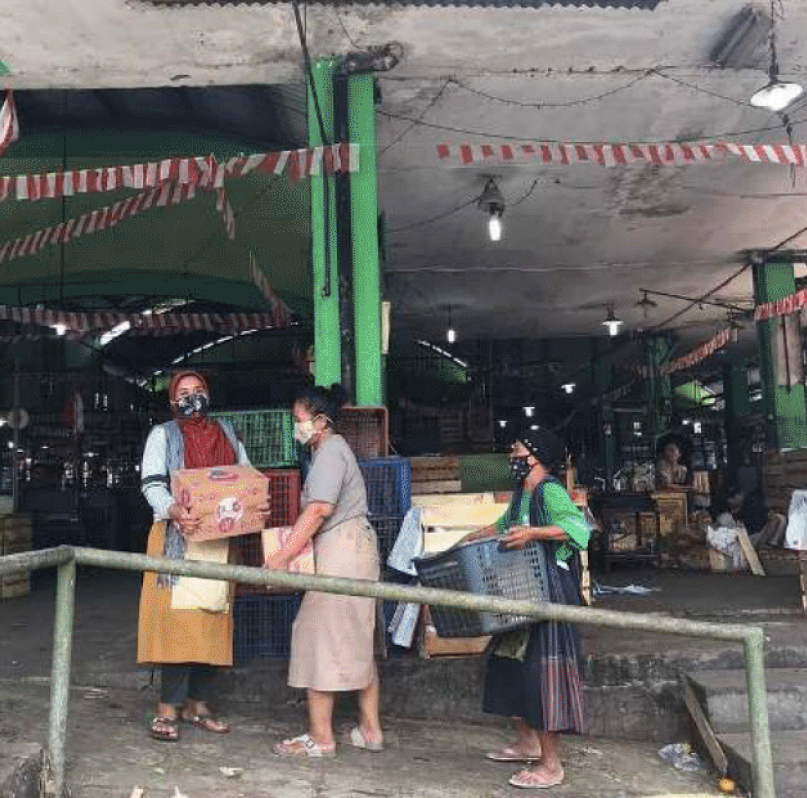 Dapur Buruh Gendong (Porter Workers’ Kitchen) and Dian Suci were invited to engage in dialogue and documentation about ways of surviving together during the pandemic and the ongoing multidimensional crisis. Dapur Buruh Gendong is a community kitchen established to provide daily lunch assistance for female porter workers (buruh gendong) in several traditional markets in Yogyakarta, including Beringharjo, Giwangan, Gamping, and Kranggan.